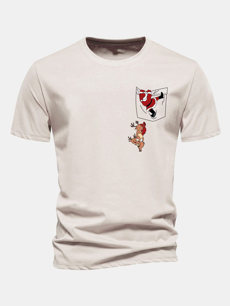 Regular Fit Pocket Santa Print Cotton T-Shirt