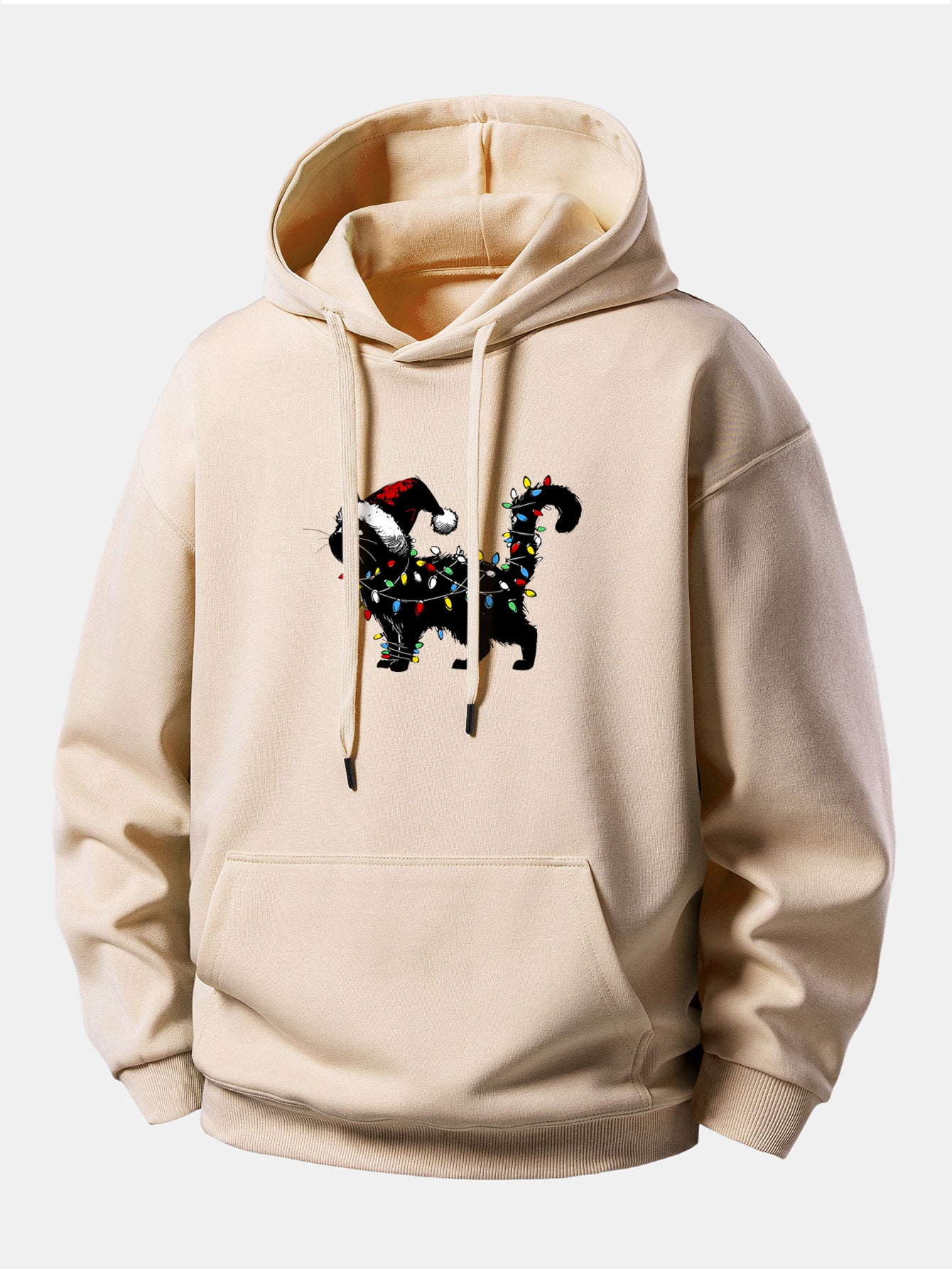 Christmas Colorful Light Black Cat Print Relax Fit Hoodie