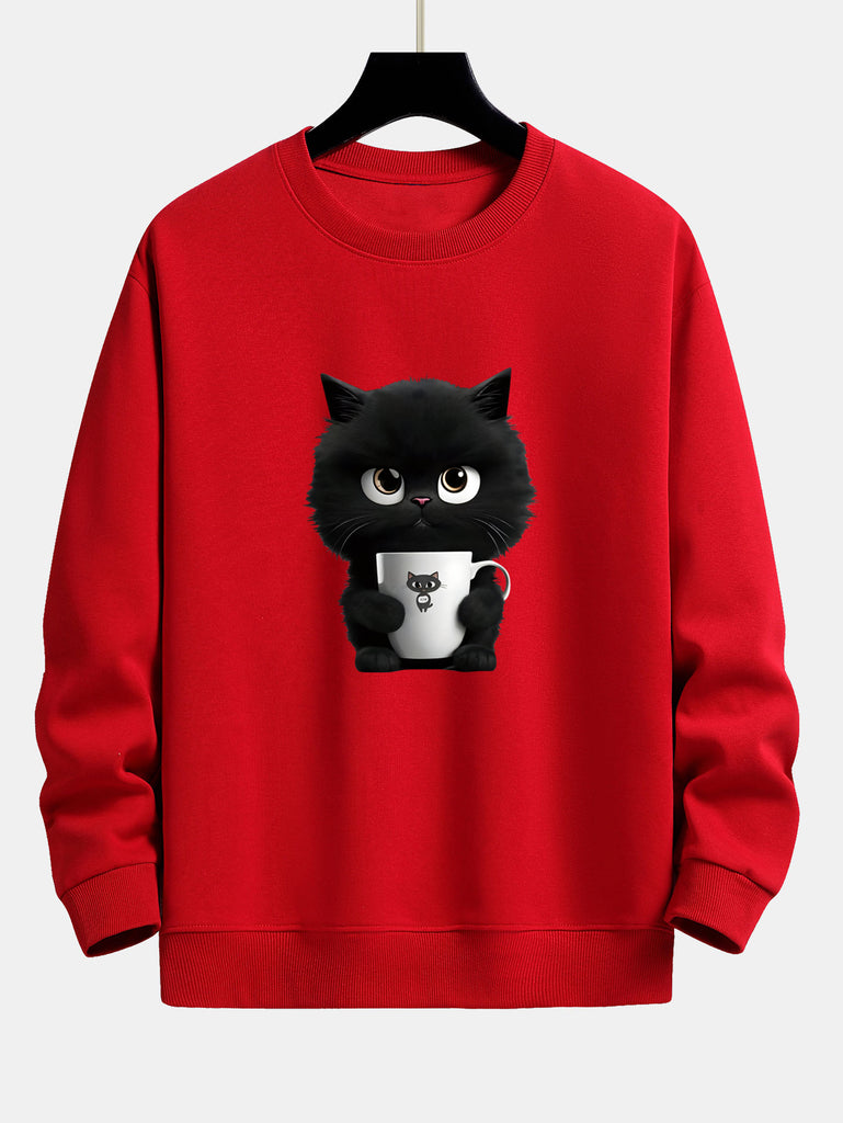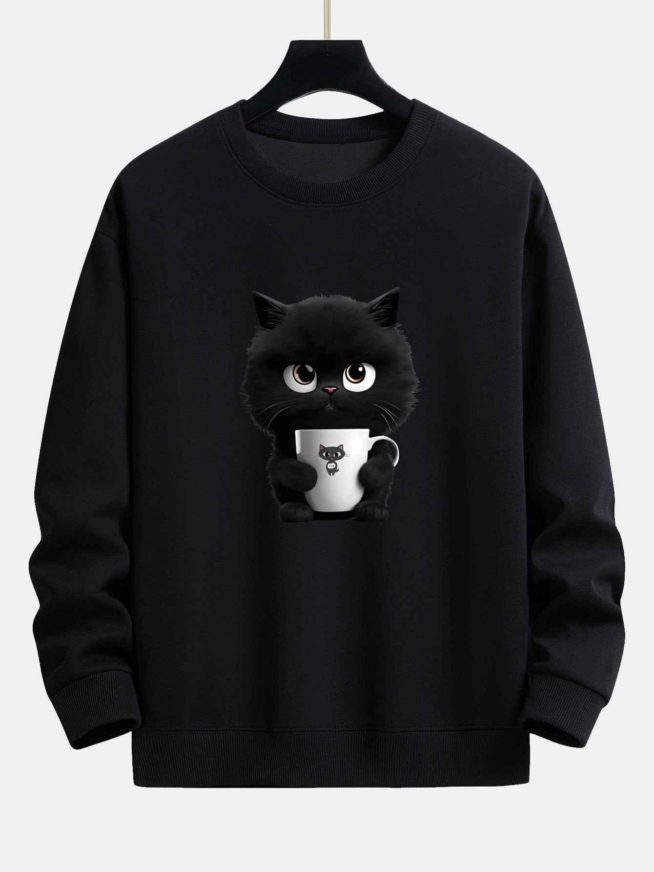 Print Relax Fit Sweatshirt. Featuring an adorable black cat graphic on soft, cozy fabric, this sweatshirt blends comfort with whimsical style. Its relaxed fit makes it perfect for layering or wearing on its own, ideal for casual outings, lounging, or everyday wear.